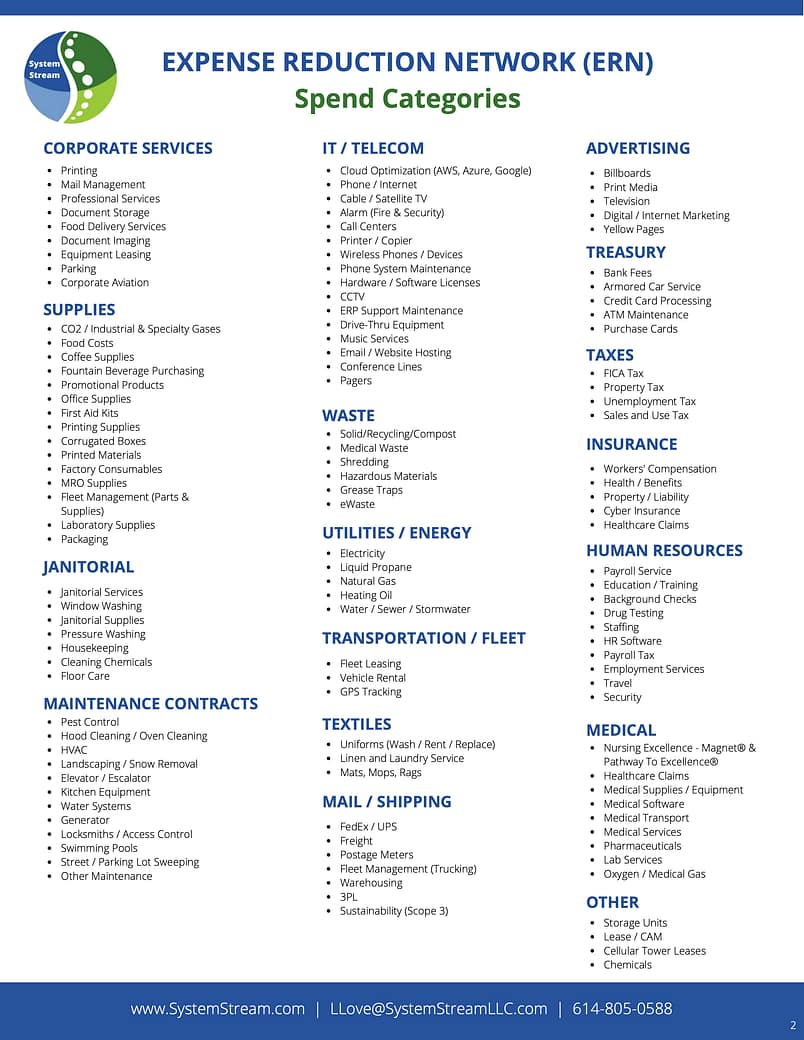 The System Stream Expense Reduction Network (ERN) supports financial leaders to identify and drive down costs across multiple spend categories, helping you improve financial outcomes while maintaining high-quality care. With healthcare costs on the rise, our network delivers innovative solutions to reduce operational expenses, increase efficiency, and enhance financial stability—allowing you to reinvest in what matters most: your patients.